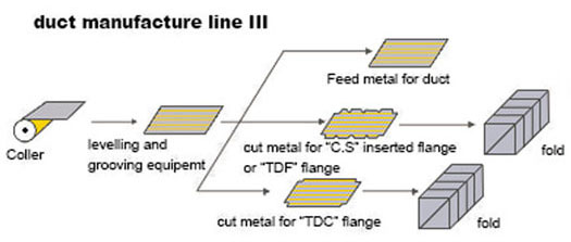 3、可完成TDC剪切角并和插條法蘭折彎,可與聯(lián)合合縫機(jī)和插條法蘭配合使用而完成完整風(fēng)管。
