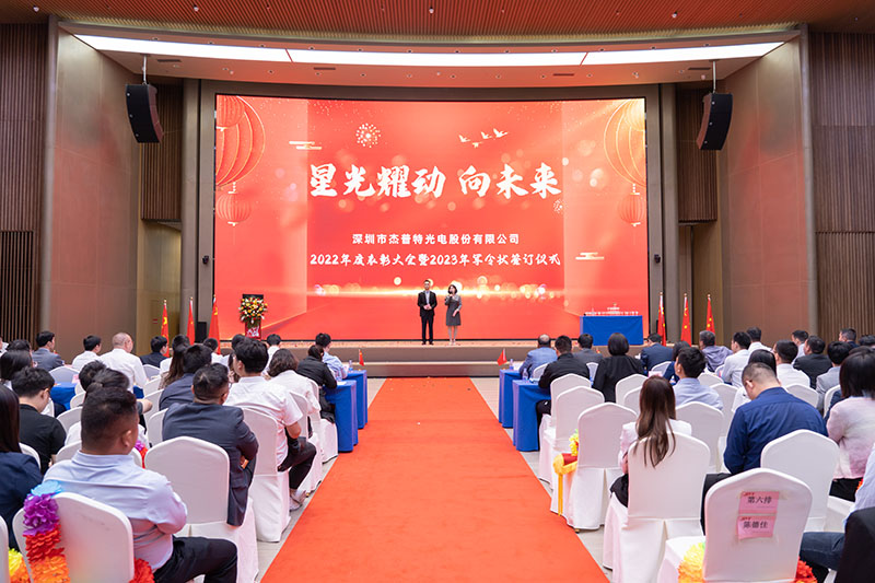 星光耀動,向未來。3月11日,深圳市杰普特光電股份有限公司2022年度表彰大會暨2023年軍令狀簽訂儀式在捷順國際會議廳隆重舉行。董事長黃治家、總經理劉健、副總經理成學平、杰普特管理層,與全體員工歡聚一堂,為杰普特在剛剛過去的2022年所取得的成就慶賀,也為贏戰充滿希望且更具挑戰的2023而祝福。