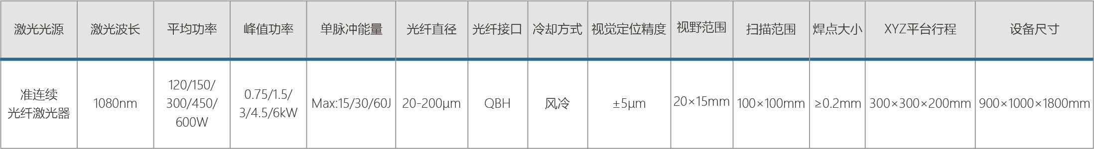 自主研發QCW光纖激光器,連續和準連續模式可選,平均功率可達600W;